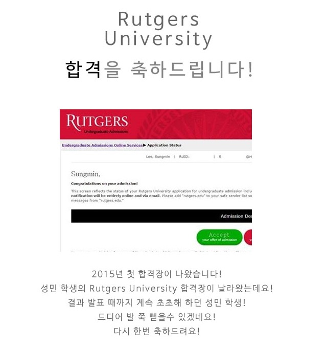 [합격장] Rutgers 합격을 축하드립니다