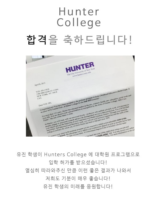 [합격장] Hunter College Graduate School합격을 축하합니다!