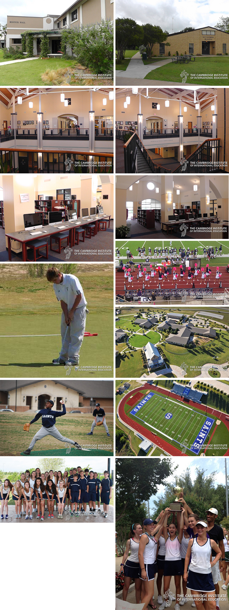 All Saints’ Episcopal School는 Texas 주 Dallas 의 바로 서쪽인 대도시인 Fort Worth에 위치하고 있습니다. 600만명 이상의 인구수와 Kimball Art Museum, Museum of Modern Art와 세계적으로 유명한 작품들이 전시되어 있는 The Amon Carter Museum이 있습니다. 학업 프로그램으로는 14개의 AP 과목, 35개의 Honors 과목을 제공합니다. Art 커리큘럼을 제공합니다. 9-12학년 과정의 학생들은 모든 분야의 예술 교육을 받을 수 있는데, 2년간의 예술 과목은 필수이고, 4년간의 예술과목 선택을 권장합니다. Studio Art, Digital Photography, Theatre Art, Choir, Class Piano, Lab Band and Percussion 등의 과목을 선택하여 수강할 수 있습니다. 학교는 Tad Bird Honors College 과정을 제공하는데, 이 과정은 학생들의 의문점을 중심으로 세계적인 관점을 가지고 다른 사람들을 위해 봉사하는 것을 배웁니다. 학교는 국제학생들을 위해 국제학생 학업 지원 프로그램을 제공합니다. All Saints’ Episcopal School는 모든 교실에 스마트 보드가 설치되어 있고, 다양한 편의 시설을 구비하고 있습니다. 특별 활동으로는 12개의 클럽, 특별 활동, 11개의 스포츠 활동을 제공합니다. SAT 평균점수는 1678점, 상위 30%는 1893점, 상위 10%는 1992점입니다. 졸업생들이 진학한 대학은 다음과 같습니다. Columbia University, California Institute of Technology, Dartmouth College, Brown University, Washington University in St. Louis, Cornell University, Rice University, Emory University, Wake Forest University, University of Southern California, University of Virginia, New York University. |